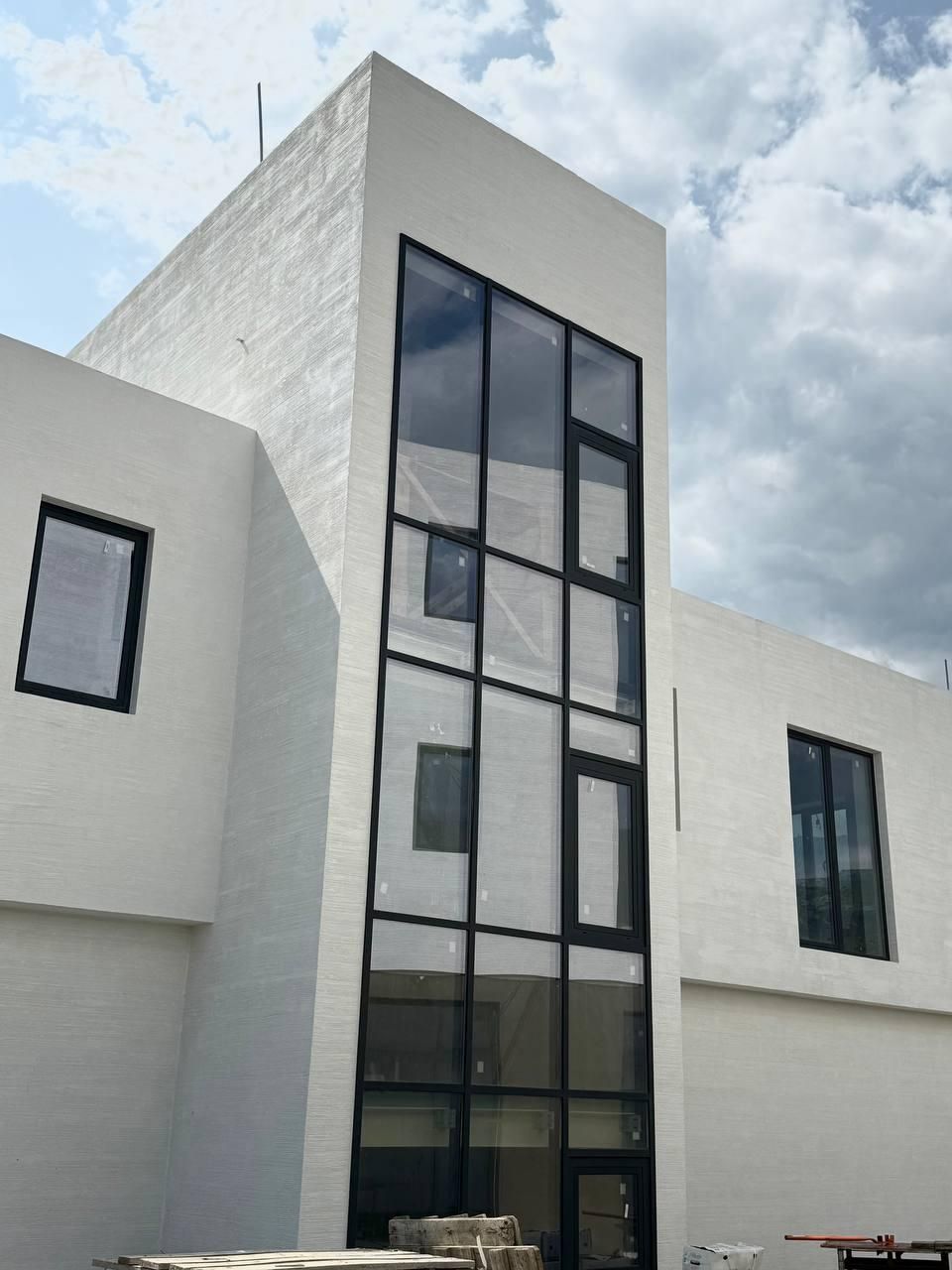 Выполнено остекление коттеджа в п. Кацивели, в современном стиле с использованием алюминиевых профилей Alutech. Применены стоечно-ригельная система Alumin Techno F50 и оконно-дверная система Alumin Techno W62, а также многофункциональные закаленные стеклопакеты.