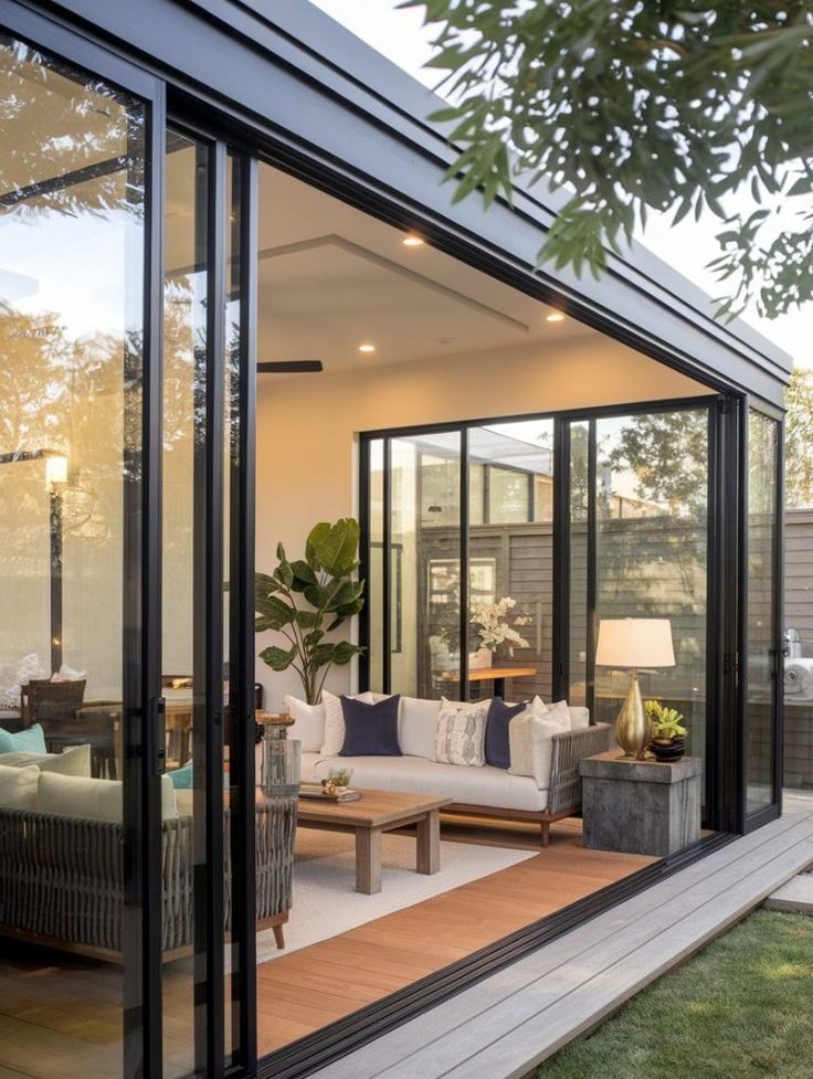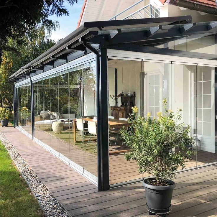 Дополнительное пространство дома в холодное время года, а в жаркие дни створки можно открыть полностью